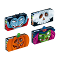 As caixas vêm em diferentes designs 3D, abóbora, caveira e vampiro, perfeitas para decorar, oferecer ou saborear numa festa de Halloween inesquecível.