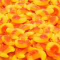 Xarope de glicose, açúcar, água, gelatina alimentar, acidificante: ácido láctico, estabilizador: sorbitol, agente gelificante: pectina, óleo de girassol, aromatizante, regulador de acidez: citrato trissódico, corantes: E100, E120, E161b, agente de revestimento: cera de abelha.